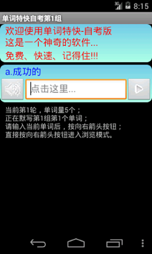 Opravdu vám umožňuje zapamatovat si spoustu slov každý den telefonu zpět software, který musíte zaplatit pouze za trpělivost, věřím, že musí trvat na návratu [Pokyny]: [Nastavení] Vyberte skupinu, kterou chcete podpořit slovo, slovo v každé saděVolume, sazba řeči, slovní pořadí atd.; [Plán], aby vás udržel krok, patří do prvních několika kol, zpět k tomu, co slovo; [features]: this software is unique ”four-wheel cycle memorize law” in the first round: five