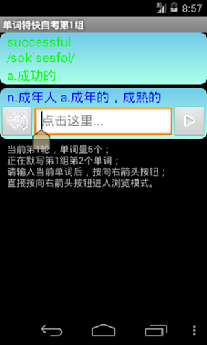 a 3. Poskytování sady slovní zásoby paketů, ovládání jejich vlastního pokroku učení 4. Tlačítko režimu prohlížení výslovnosti středního výslovnosti pro přepnutí do režimu diktátu 5. Režim prohlížení lze přepnout do středu diktážního režimu vstupního pole 6. 7 může se automaticky přečíst nastavením funkce.