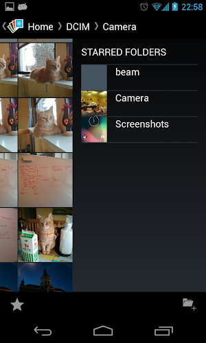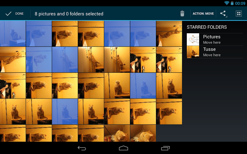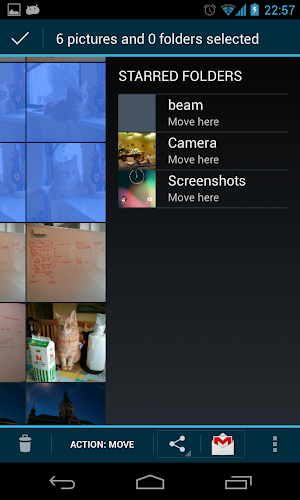 DL Image Manager (nebo DLIM v krátkosti) je aplikace, která vám umožní spravovat všechny vaše různé obrázky uložené v telefonu, tabletu nebo co běží Android.Je vyroben se tak rychle, jak je to možné pohyblivé obrázky mezi několika složek. Na pravé straně máte své oblíbená složky. Můžete přidat tím, že půjdete do složky a stiskněte tlačítko s hvězdičkou. Při dlouhém stisku snímek, který spustíte režim výběru. Pak je to jen stiskem několika snímků a klepněte na tlačítko složky na pravé přesunout nebo zkopírovat tam. Tam jsou také akce pro sdílení vybraných snímků a jejich odstranění.