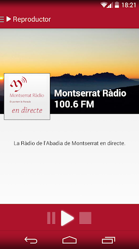 Analýza A Revize Aplikací Pro Android: Montserrat Ràdio, Vyvinuté Společností Enacast. Uvedeno V Kategorii Komunikace. Aktuální Verze Je 1.2.7, Aktualizována Na 21/12/2015 . Podle Recenzí Uživatelů Na Google Play: Montserrat Ràdio. Dosaženo Více Než 936 Instalací. Montserrat Ràdio Má V Současné Době Recenze 13, Průměrné Hodnocení 4.7 Hvězd