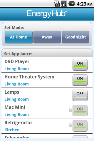 Tato aplikace vyžaduje systém EnergyHub u vás doma. Ještě ho nemáte? Navštivte www.energyhub.com, kde se dozvíte více. nebo její domov do jakéhokoli z různých režimů obsazenosti („doma“, „pryč“ a „dobrou noc“). Stačí klepnout na režim, který chcete přepnout na a během několika sekund připojených zařízení, a to buď zapnout nebo vypnout, když je nastavíte. Pokud jsou bezdrátové termostaty nainstalovány jako součást systému EnergyHub, přepne se na teplotu, kterou jste určili pro tento režim. Je to dobré pro životní prostředí a dobré pro vaši peněženku. Pracujeme s nástroji, abychom pomohli přivést EnergyHub do domovů po celé USA a Kanada. Tímto způsobem lidé více lidí stejně jako vy budou moci lépe porozumět a převzít kontrolu nad tím, jak využívají energii ve svých domovech.www.energyHub.com