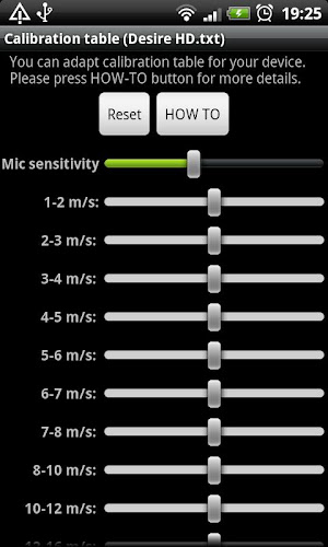 Existuje schopnost kalibrovat model telefonu, aby se získalo přesnější výsledky. Přiblížit se k reálnému anemometru.