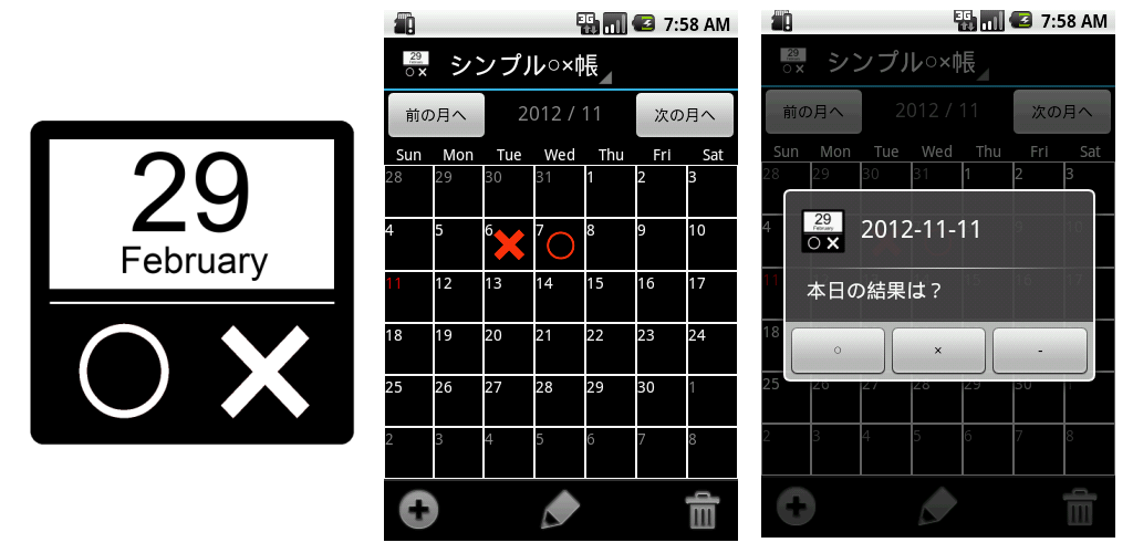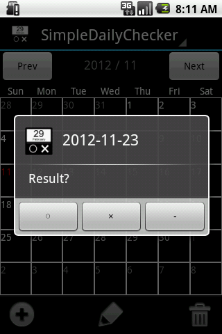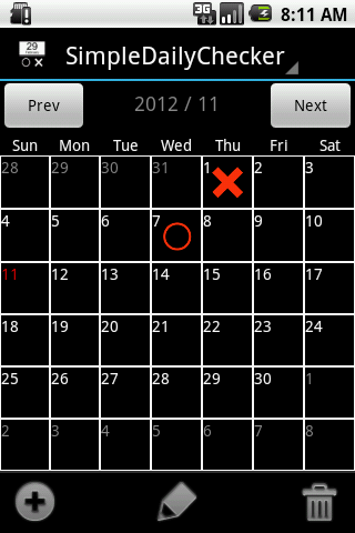 To select the day you want to put the record from the calendar, if you accomplish the task (daily routine) ○, in the case of not accomplish the task to put the ×.