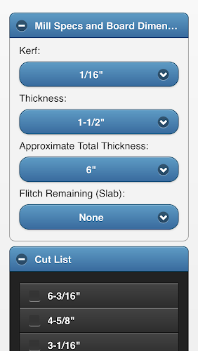 Kalkulačka Sawmill vám pomůže s výpočty při řezání řeziva.může generovat seznam řezů, aby požadované desky účetnictví pro Blade Kerf. Jakmile jsou řezy prováděny, mohou být v aplikaci zkontrolovány.
