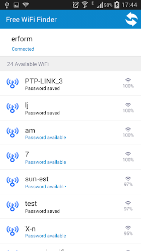Help you scan and connect to millions of Free WiFi Spot.Operation is very simple, just scan, find out free wifi marked with "Password available" and click to connect.