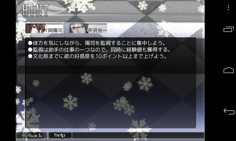 Na některých zařízeních, pokud zavřete herní obrazovku pomocí tlačítka Domů Android, aby hru zavřela, může hra nesplněně skončit. To může způsobit, že proces uložení nebude prováděn správně, takže v některých případech se v galerii již nebudou zobrazovat ani fotografie, které jste již viděli. Před použitím jiných aplikací zavřete hru pomocí tlačítka „Quit“.