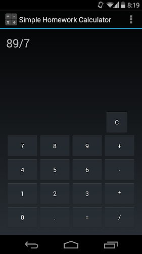 ** Přečtěte si popis úplného popisu aplikace a porozumíte scénáři případu zamýšleného použití pro tuto aplikaci. **Jednoduchý kalkulačka domácích úkolů je kalkulačka minimální funkčnosti navržená tak, aby pomohla studentům s jednoduchou aritmetikou. Záměrně se netýká běžných operací kalkulaček, jako je ukládání paměti a pořadí operací, a proto vyžaduje, aby student prokázal své vlastní pracovní znalosti matematiky. To je perfektní pomocník pro váš syn nebo dceru, který má pomoci zkontrolovat jejich základní matematickou aritmetiku. Jednoduché a přesné, ale ne sofistikované, aby pro ně udělaly domácí úkoly.