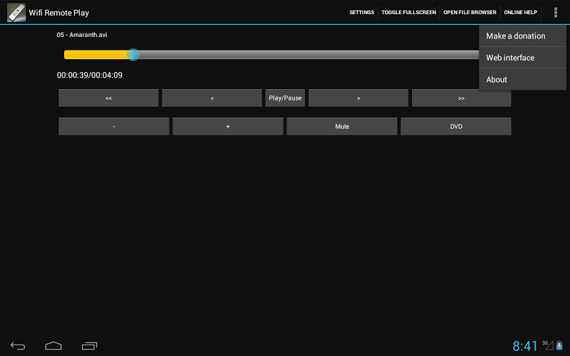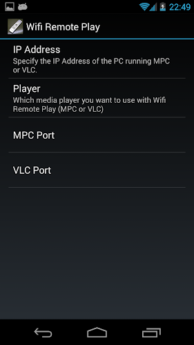 WiFi Remote Play je aplikace pro dálkové ovládání pro video přehrávač přehrávačů pro mediální přehrávač (MPC) a Videolan Client (VLC), což vám umožní ovládat ji přes síť Wi-Fi. Úplně zdarma, žádné reklamy!Funkce: