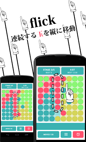 Když švihnete po obrazovce, sousední koule stejné barvy se budou pohybovat společně.
