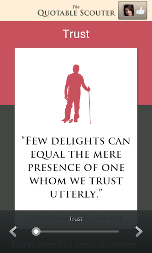 Citovaná skautská aplikace vytvořená pro vaši „mistrovskou minutu skautů“ je vše, co jste kdy chtěli, přímo na dosah ruky, aby byla vaše „minuta“ nezapomenutelná. aplikace pro průzkumníky s kvótami sděluje hodnoty, které skautské hnutí prosazuje již od doby, kdy robert baden-powell v roce 1908 publikoval skauting pro chlapce. Tyto hodnoty, které jsou pro náš národ a svět tak zásadní, stojí za to opakovaně prozkoumávat, když pracujeme na rozvoji silného charakteru v nás samotných a mladých lidech, kterým sloužíme.inspirujte skauty všech věkových kategorií pomocí věrné důvěry{##}•}• organizované loyly{#tyin quotes:{#•}•} pomáhání