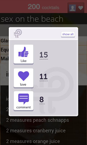 Každý si občas užívá fantastický tipple, ať už se párty mezi přáteli nebo chvilku uvolní, ale někdy potřebujete víc než jen rum a koks. Tato aplikace vám poskytuje více než 200 receptů k vytvoření perfektního nápoje pro každou příležitost, od mátové mojito nebo klasické Margarity po sofistikovaný koktejl šampaňského nebo exotického ruského jarního úderu. S barevnými fotografiemi a snadno sledovatelnými recepty je tato aplikace nezbytným průvodcem, jak zapůsobit na vaše hosty a vyrábět nápoje toast ve městě. a interagujte s jiným čtenářem… přímo z aplikace!• Úžasné obrázky s vysokým rozlišením. Optimalizováno pro zobrazení sítnice