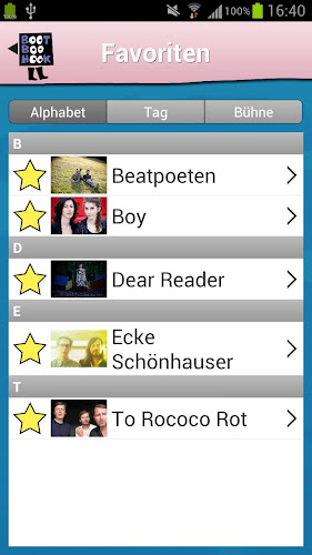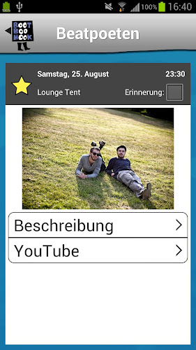 3 dny, 3 stage, více než 40 bandsdie oficiální aplikace pro bootboohook festival v roce 2012 od 24. do 26. srpna na hannover.alle informace o programu, kapelách, off-roadu a kempování.jízdní řád se všemi platformami na blick.stell své oblíbené pohromadě, aktivujte alarm a neukažte, že se nestane, že by vám neunikly další lieblingsbands.konzeption, design a publikace: bwh gmbh - programování vydavatelské společnosti: know throw gmbh