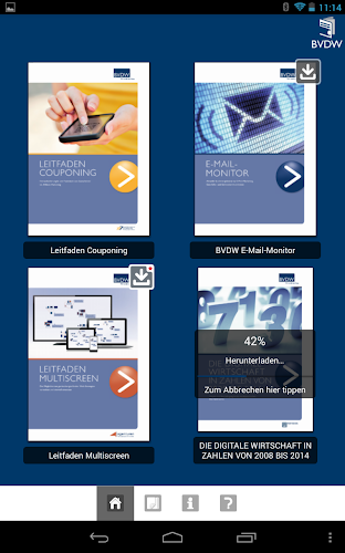 Load once, read everywhere: the free BVDW Publication app provides all the guides, compasses, white paper, reports and studies of the Federal Association for Digital Economy (BVDW) E. V.to the calling on tablet and smartphones available.