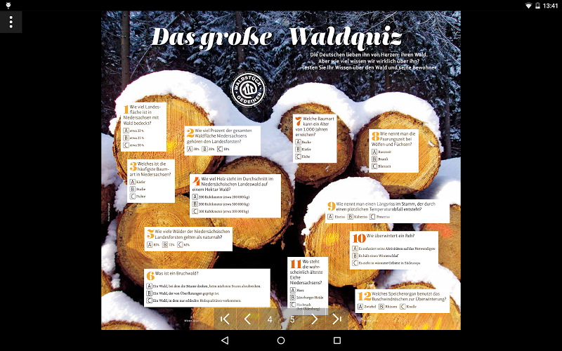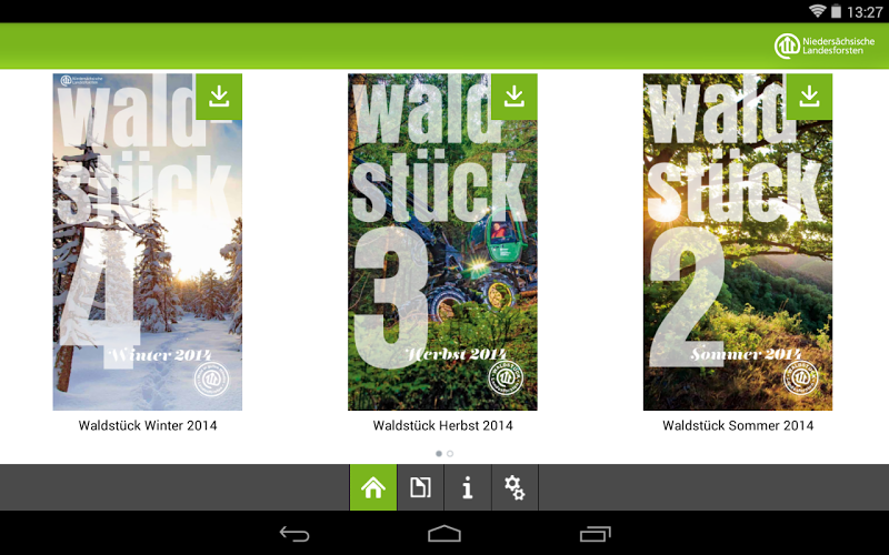 kiosek plný informací o dolnosaském lesnictví.z obchodní zprávy do letáků lesní pedagogiky, od zákaznického časopisu „dřevo“ až po leták palivového dřeva – zde si mohou zdarma stáhnout všechny brožury o lesnictví Dolního Saska a v klidu si je prohlížet.