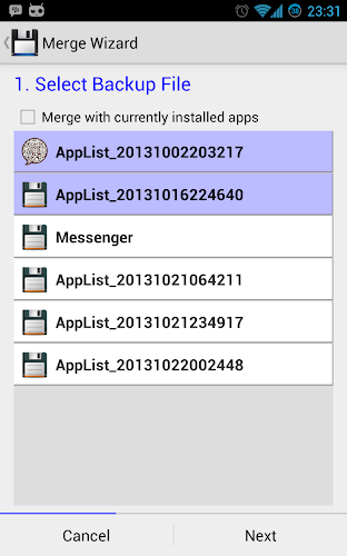 - Zobrazit seznam záloh a přesunout na trh znovu nainstalovat