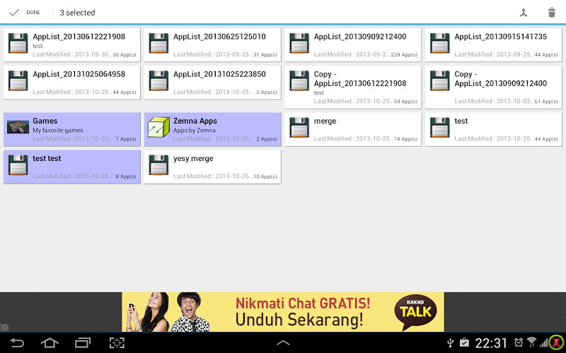 - Odeslat seznam aplikací e-mailem atd. Uloží tržní odkaz nainstalované aplikace pro ji po resetu telefonu. Aplikaci si můžete snadno stáhnout na trhu.