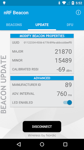 Analýza A Revize Aplikací Pro Android: nRF Beacon, Vyvinuté Společností Nordic Semiconductor ASA. Uvedeno V Kategorii Nástroje. Aktuální Verze Je 1.4.3, Aktualizována Na 20/06/2016 . Podle Recenzí Uživatelů Na Google Play: nRF Beacon. Dosaženo Více Než 51 Tisíc Instalací. nRF Beacon Má V Současné Době Recenze 76, Průměrné Hodnocení 2.8 Hvězd
