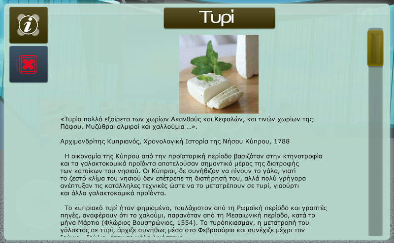 Oikoproducts Elschediasmos: Etal SA Vývoj: Omega Technologyh Lesvos, Heraklion, Kréta a Kypr jsou charakterizovány svou výraznou středomořskou povahou a jejich jedinečnou kulturou, jak se postupem času vyvíjely.key to a visitor is the need to discover each area with all of the senses, and through them ... taste the flavors so some of the typical local products and culture they create, are presented here in order to enrich