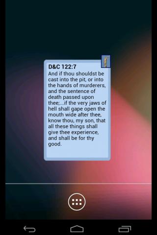 LDS Písmo a denní tisk je widget domovské obrazovky, který vám každý den poskytuje inspirativní písmo LDS.Tato aplikace se neotevře - je to widget. Možnost e-mailu nebo procházet předchozí den a budoucí den verše.