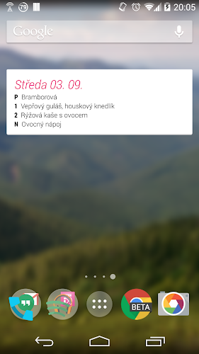 Aplikace mohou: ● Zobrazit nabídku pro příští dva týdny ● Seznam změn v plánu pro dnešek a další pracovní den.uživatel má také možnost nastavit automatické aktualizace při spuštění.