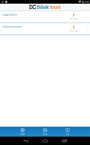 DC od The Book Tours je nový způsob pro návštěvníky a obyvatele Washingtonu, D.C. Prozkoumat bohatost nefederálního občanského života ve Washingtonu a jeho charakteru jako město, jak oživilo fikci.Aplikace poskytuje uživatelům možnost chodit, procházet nebo projíždět Washingtonem, D.C. podél trasy míst, která byla zobrazena v beletrii. Každé turné je doprovázeno mapou pro snadnou navigaci. Některé zastávky podél každé turné zahrnují také fotografie nebo zvuk pro zvýšení zkušenosti uživatele.