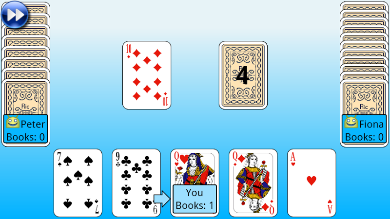 Tato aplikace nabízí dvě varianty klasické karetní hry „Go Fish!“Objekt hry je shromáždit co nejvíce „knih“. Kniha se skládá ze všech čtyř karet se stejnou hodností.