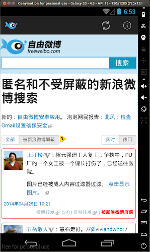 Analýza A Revize Aplikací Pro Android: 自由微博, Vyvinuté Společností GreatFire.org. Uvedeno V Kategorii Sociální Síť. Aktuální Verze Je 1.9, Aktualizována Na 10/11/2017 . Podle Recenzí Uživatelů Na Google Play: 自由微博. Dosaženo Více Než 20 Tisíc Instalací. 自由微博 Má V Současné Době Recenze 310, Průměrné Hodnocení 4.3 Hvězd