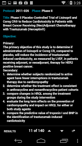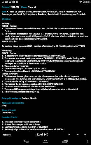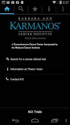 Barbara Ann Karmanos Cancer Institute, který se nachází v polovině-město Detroit, Michigan, poskytuje bezplatné aplikace pro Android telefony a tablety, která poskytuje podrobné informace o otevřených intervenční onkologických klinických studiích.Vlastnosti App: