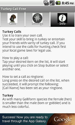 Analýza A Revize Aplikací Pro Android: Turkey Call Free by K Solution, Vyvinuté Společností K Solution. Uvedeno V Kategorii Sport. Aktuální Verze Je 1.2, Aktualizována Na 04/09/2015 . Podle Recenzí Uživatelů Na Google Play: Turkey Call Free by K Solution. Dosaženo Více Než 37 Tisíc Instalací. Turkey Call Free by K Solution Má V Současné Době Recenze 50, Průměrné Hodnocení 3.8 Hvězd