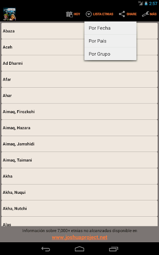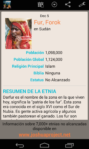Analýza A Revize Aplikací Pro Android: unreached people of the day, Vyvinuté Společností Joshua Project. Uvedeno V Kategorii Životní Styl. Aktuální Verze Je 2.1, Aktualizována Na 08/01/2015 . Podle Recenzí Uživatelů Na Google Play: unreached people of the day. Dosaženo Více Než 2 Tisíc Instalací. unreached people of the day Má V Současné Době Recenze 88, Průměrné Hodnocení 4.9 Hvězd