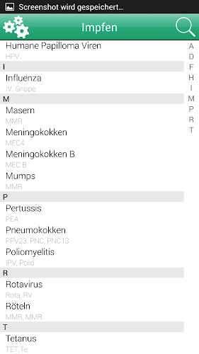 Program umožňuje Quick Navigation (QuickNav) mezi doporučením pro očkování pro batolata a dospělé.