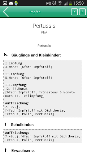 vč. Doporučení Aktuelle očkování pro Menigokokken B a HPV. Doporučené intervaly očkování jsou jasně podávány pro malé děti, školní děti a dospělé.