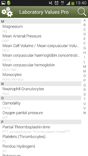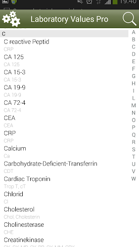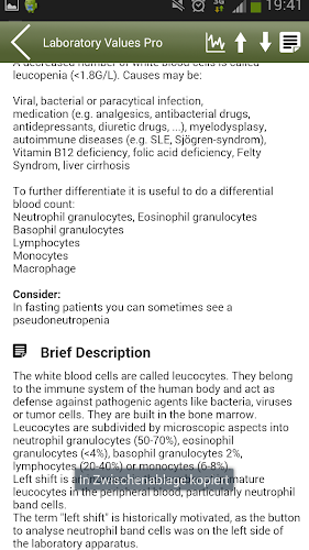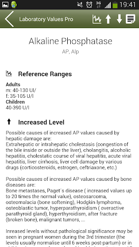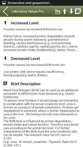 Laboratorní hodnoty Pro dávají jak nelékařským čtenářům, tak zdravotnickým pracovníkům rychle námořní a jasně strukturovaný přehled hlavních rutinních laboratorních parametrů a možných příčin jejich nárůstu a snížení. Laboratorní hodnoty jsou jasně uspořádány, abecedně uspořádány a rychle umístěny v nabídce. Standardní hodnoty jsou specifikovány jak ve starých jednotkách, tak ve SI. Pro každou laboratorní hodnotu je krátká informace rychle vyhledávána. Jednotlivé briefingy jsou obecně formulovány tak, aby porozuměly a poskytovaly přehled o indikacích, funkci a úkolu každé laboratorní hodnoty. Základní laboratorní hodnoty poskytují uživateli přehled hlavních rutinních laboratorních parametrů včetně hematologie, krevního počtu, klinické chemie, koagulace, rychlé, INR, elektrolytů, markerů nádoru a analýzy krevního plynu. Program umožňuje kromě klasického posouvání rychlé navigace mezi názvem laboratoře, zkratku laboratorní hodnoty, normální rozsah hodnoty a diferenciální diagnostickou interpretaci zvýšení a snížení hodnoty. Další vyhledávací lišta umožňuje hledat konkrétně požadovanou laboratorní hodnotu.V Současné Době Nabízíme Poslední Verzi Aktualizovanou 17/06/2019 . Toto Je Naše Nejnovější, Nejvíce Optimalizovaná Verze. Je Vhodný Pro Mnoho Různých Zařízení. Zdarma Ke Stažení Přímo Apk Z Obchodu Google Play Nebo Jiných Verzí, Které Hostujeme. Kromě Toho Si Můžete Stáhnout Bez Registrace A Bez Nutnosti Přihlášení.