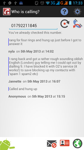 aplikace vám umožňuje zkontrolovat identitu neznámého čísla při vyzvánění nebo později po výběru ze seznamu posledních hovorů.