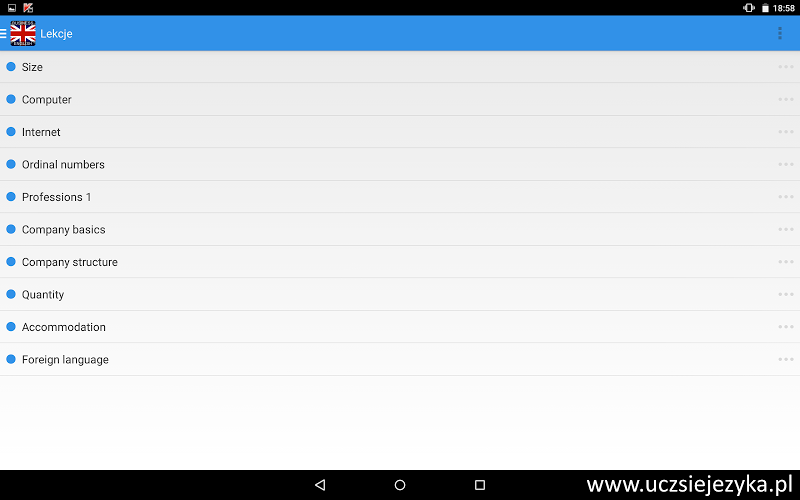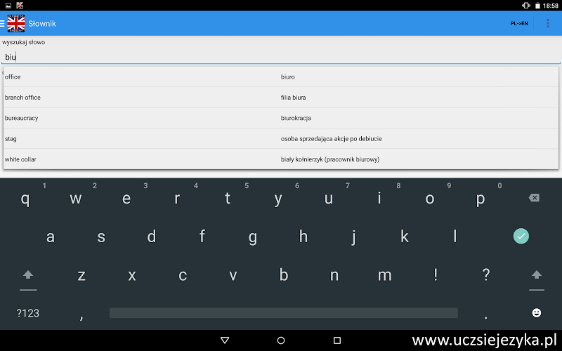 Obchodní angličtina nebo obchodní angličtina. Učení anglického jazyka je jednoduché a příjemné! Business English Coumse zdarma od http://www.uczsiejezyka.pl - zdarma a s učitelem!Aplikace nabízí více než 2 200 slov a obchodních frází, což bude užitečné v takových situacích, jako je anglická práce, obchodní cesta do Velké Británie nebo jednoduše cizí, stejně jako svátky v zahraničí. Umožňuje vám seznámit se s vaší firmou na vašem smartphonu a tabletu: