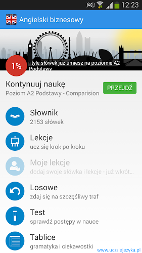 - Przejrzysty układ menu, więcej lekcji, testy i gramatyka