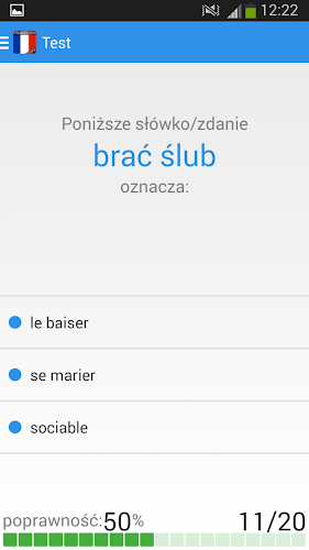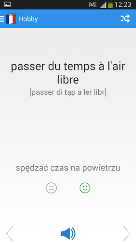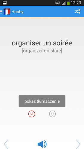 Fráze jsou rozděleny do tříd a testů, které vám umožní naučit se postupně. Možnost skrýt význam pre-francouzských slov poté, co polský pomáhá v pamatování. Kromě učení lekce je možné čerpat slova. Francouzských slov lze číst učitel.
