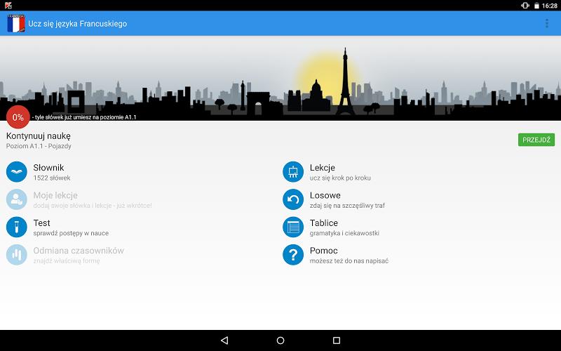 Language francouzsky zdarma s aplikací http://www.uczsiejezyka.pl učí francouzštinu je snadné a zábavné! Stáhnout nyní zdarma francouzský jazykový kurz a naučit se jazyk s naší pomocí :)Zdarma mobilní aplikace vám umožní prozkoumat smartphonu a tabletu: