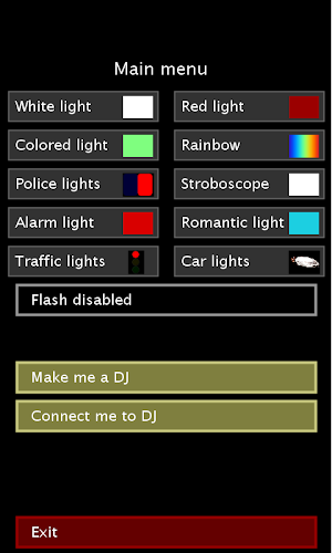 tato aplikace vám umožňuje používat telefon nebo tablet jako párty světlo. můžete si vybrat z těchto efektů:- bílé světlo s volitelnou intenzitou