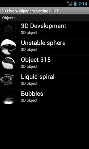 ✔ Počet živých tapet: 5 3D-Objects. ! ! ! ••••••••••••••••••••
