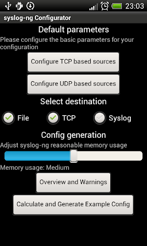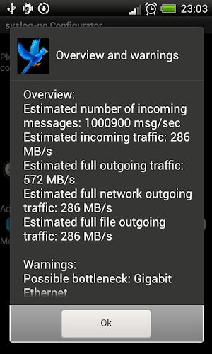 Finally - because I have some experience how to create performance optimized syslog-ng configuration - I decided to make a special syslog-ng configurator application that can calculate the necessary syslog-ng settings and generate a sample syslog-ng configuration. So this was just my hobby project, but because the result seemed to be useful, I decided to share with you.