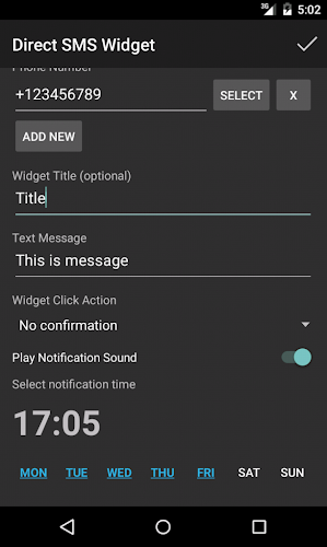 Přidejte widget pro odeslání zprávy z domovské obrazovky.Přidat naplánované události, které obdrží oznámení pro odesílání zpráv. Zobrazeno)