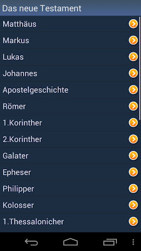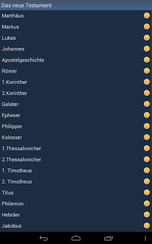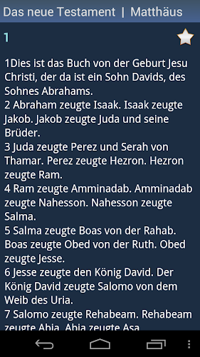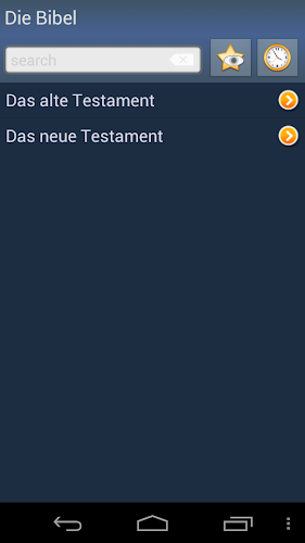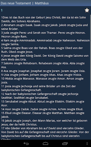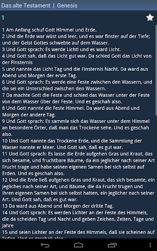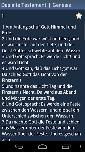 Toto je německá svatá Bible. Aplikace je offline a nepotřebuje připojení k internetu. Doporučujeme používat připojení Wi-Fi. Historie - každé slovo, které jste kdy viděli, je uloženo v historii. Oblíbené - můžete přidat slova do seznamu oblíbených kliknutím na ikonu „Star“. Správa seznamů historie a favoritů - tyto seznamy můžete upravit nebo je vyčistit. Různá nastavení - můžete změnit písmo a téma aplikace (vyberte jedno z několika barevných témat). Slovo pravopis pomocí modulu textu na řeč (vyžaduje připojení k internetu). poháněno ISSPeech®. Kontextové vyhledávání slov - klikněte na libovolné slovo v překladu a vyhledejte jeho překlad. Náhodné slovo dne. Chcete -li zobrazit widget v seznamu, musí být aplikace nainstalována pro paměť telefonu (databáze slovníku může být nainstalována kdekoli).