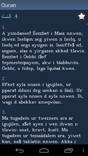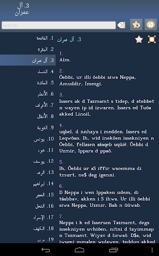 Toto je Korán v Amazigh Ramdane v Mansour. Aplikace je offline a nepotřebuje připojení k internetu.databáze bude stažena po spuštění aplikace poprvé. Doporučujeme používat připojení Wi-Fi.