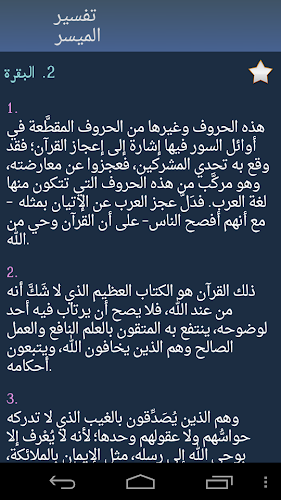 Toto je القرآن-Korán v arabštině تفسير الجلالين Jalal Ad-Din Al-Mahalli a Jalal Ad-Din As-Suyuti, تفسير المیسر King Fahad Koránský komplex. Aplikace je offline a nepotřebuje připojení k internetu.databáze bude stažena po spuštění aplikace poprvé. Doporučujeme používat připojení Wi-Fi.