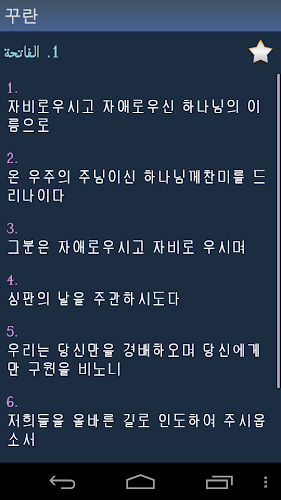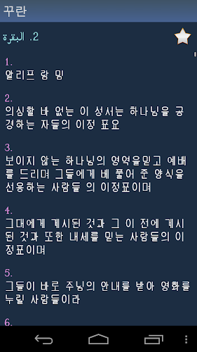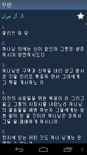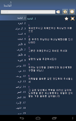Toto je 한국어 꾸란 꾸란 Korán v korejštině. Aplikace je offline a nepotřebuje připojení k internetu.databáze bude stažena po spuštění aplikace poprvé. Doporučujeme používat připojení Wi-Fi.