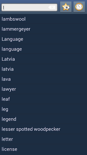 2. Oblíbené - můžete přidat slova do seznamu oblíbených kliknutím na ikonu „Star“.