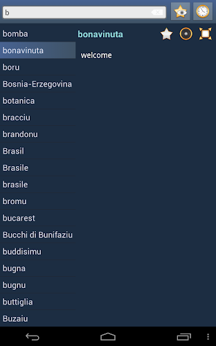 Toto je anglický korsický a korsický anglický slovník (Inglese Corsu Dizziunariu). Slovník je offline a nepotřebuje připojení k internetu.English Corsican Dictionary Database bude stažena po spuštění aplikace poprvé. Doporučujeme používat připojení Wi-Fi.