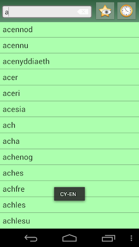 Databáze anglického velšského slovníku a welsh anglického slovníku (Geiriadur saesneg cymraeg) bude stažena, když je aplikace spuštěna poprvé. Doporučujeme používat Wi-Fi Connection.English Welsh Dictionary je offline a nepotřebuje připojení k internetu.