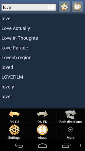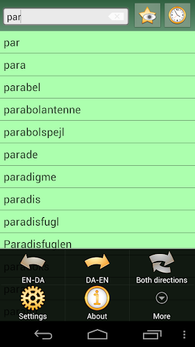Toto je angličtina - dánský a dánský - anglický slovník; Engelsk - Dansk Og Dansk - Engelsk Ordbog. Aplikace funguje offline a nepotřebuje připojení k internetu.databáze bude stažena, když je aplikace spuštěna poprvé. Doporučujeme používat připojení Wi-Fi.